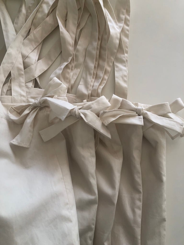 リボンから裏地まですべて同じ生地でお作りしています。オールハンドメイド。」